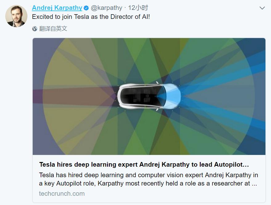 Karpathy本人也在Twitter表达了对在特斯拉任职的期待——