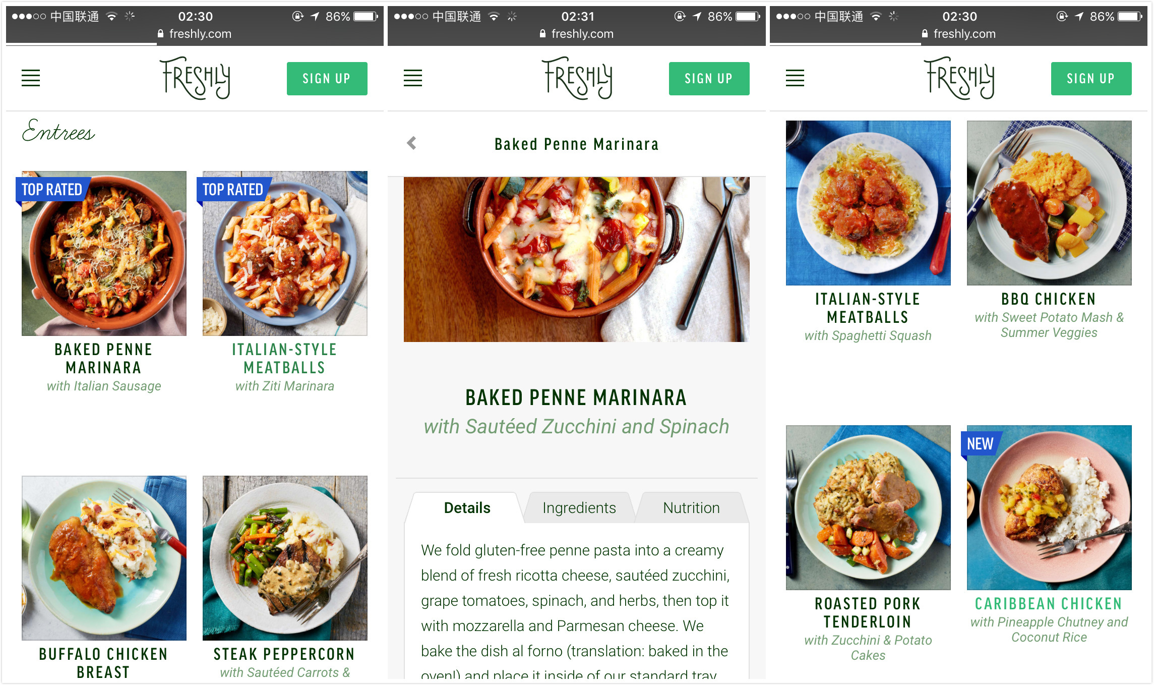 说实话健康食品最近确实是很火,亚马逊宣布收购 Whole Foods(现在看是要竞购),Blue Apron 和 Delivery Hero 也进行了 IPO 的报价。和 Blue Apron 简单粗暴地寄给你一个食谱以及一篮生鲜不同,Freshly 配送的是做好的饭菜,一周送一次,每天吃的时候在微波炉或烤箱加热即可。同时 Freshly 也强调他们配送的饭菜不是冰冻食品,而是厨师现做出来的。按常识判断,因为已经做熟了所以用户收到后应该也不需要冰冻,只需要冷藏。