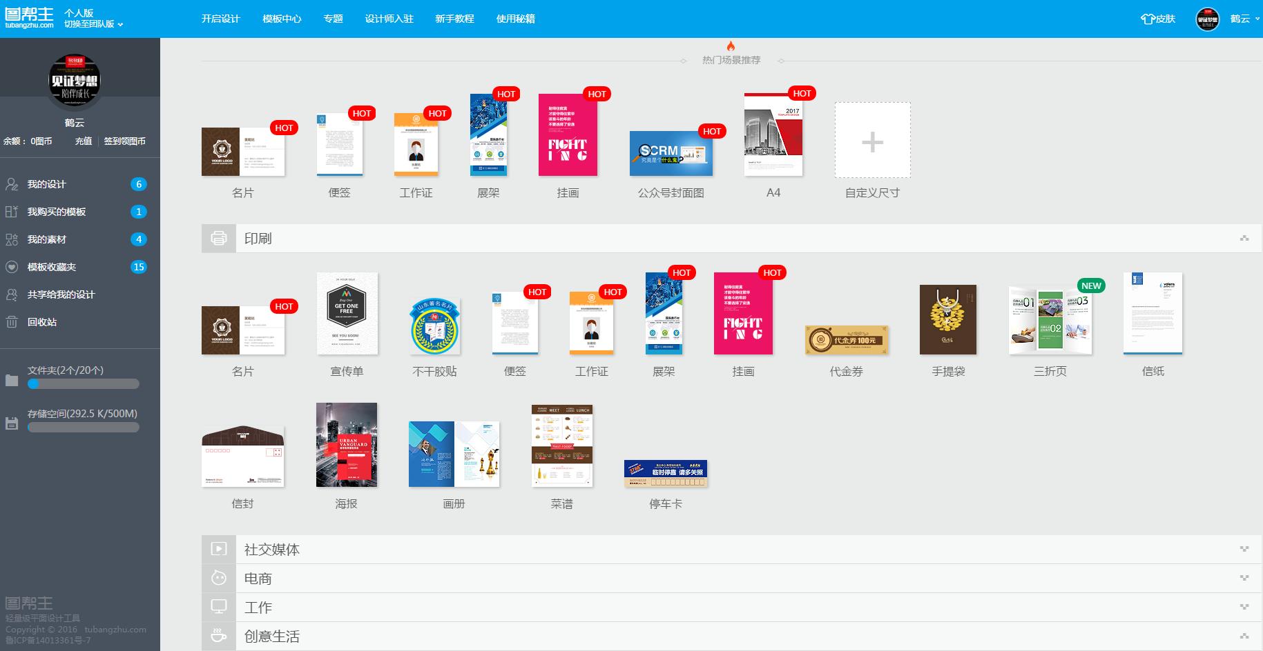 在多多印发展初期,团队在平台尝试设置了自助设计板块,结果发现有50%的客户自助设计之后再下单,于是团队又开发出了图帮主。图帮主是一个平面设计工具,用户只需要拖拉拽就可以设计自己的海报和宣传单等营销需求,目前图帮主平台有几万个元素和2万多个模板。此外,两个网站互通,设计和印刷相结合,用户在线自助设计后可以选择,如果需要印刷就点击印刷,不需要印刷可以下载和分享,用于传播。目前图帮主的素材由团队设计师提供,下半年将引进专业设计师平台作品,对其设计进行改造再利用。