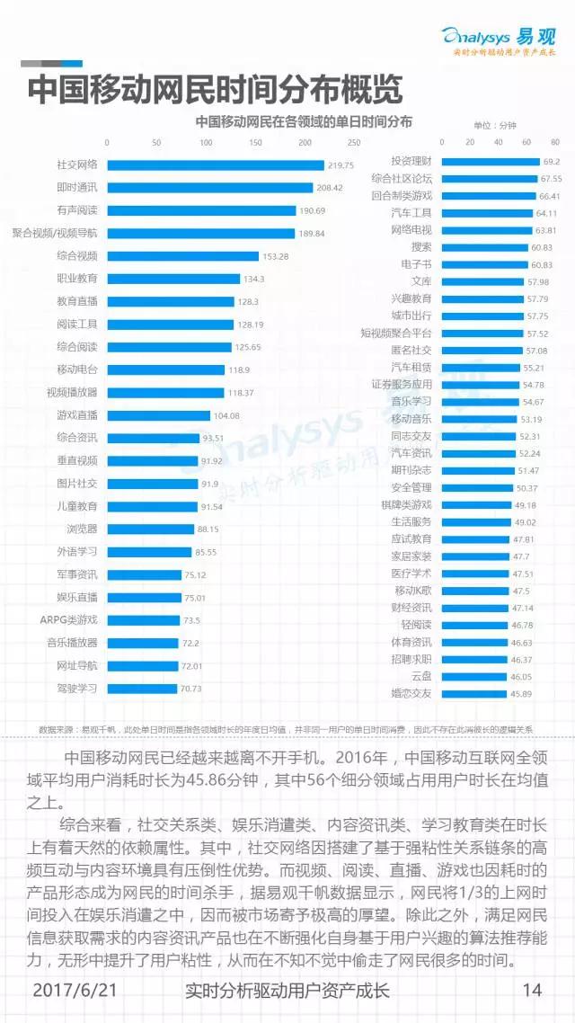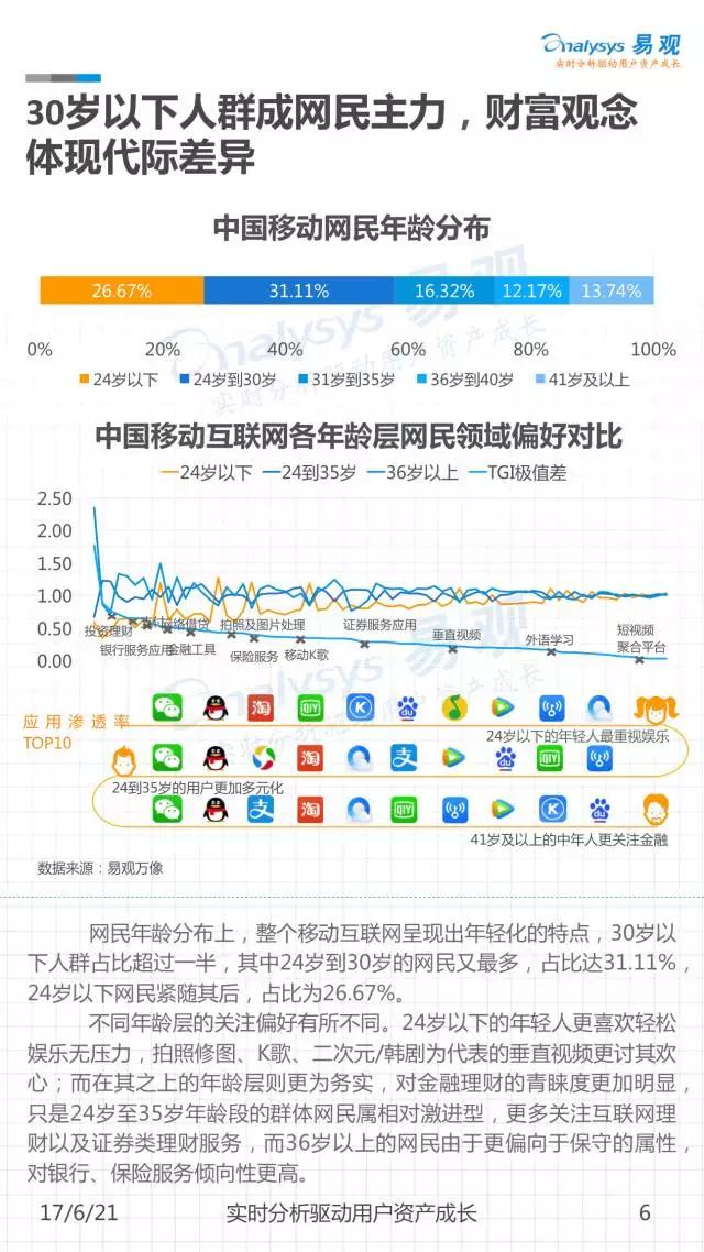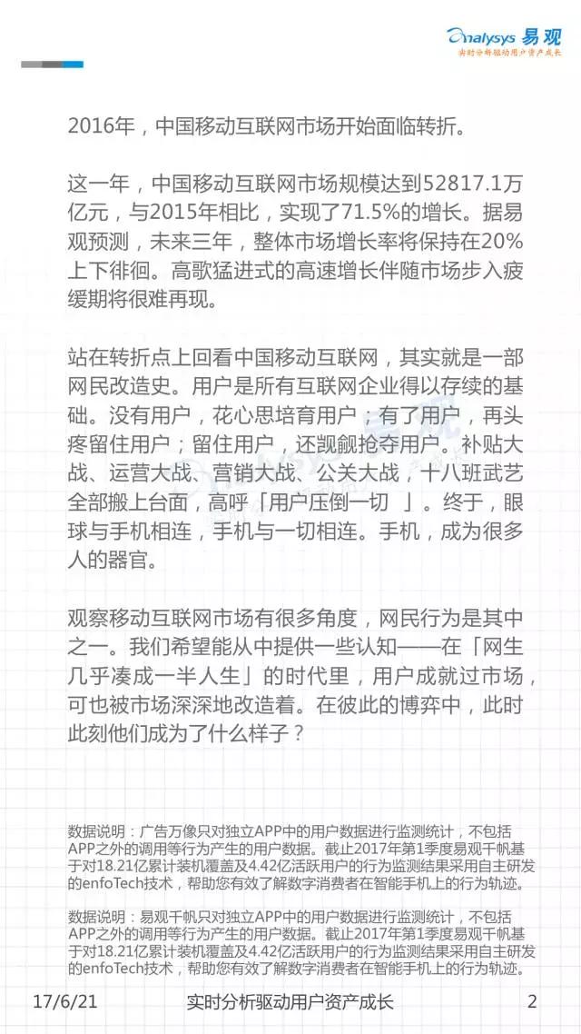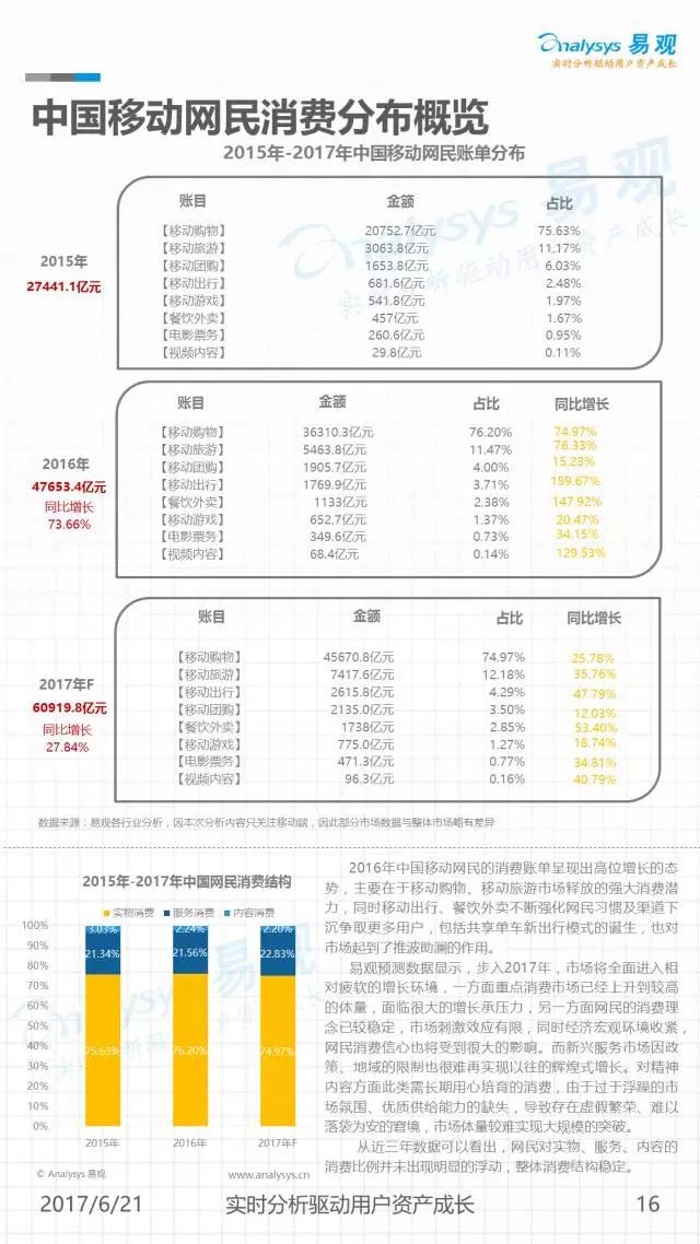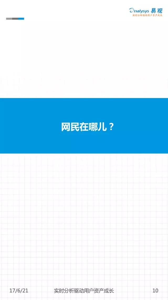 网生(网络生活),几乎凑成了我们一半的人生。而网民是互联网市场最重要的资产。《中国移动互联网网民图鉴》是由易观发布的一份聚焦2016年中国移动网民历史行为的分析,通过对移动网民在不同领域及应用间的规模分布、时间分布、意识形态变迁等进行解读,可以帮助大家从宏观到微观地窥见当下互联网的消费者全貌。