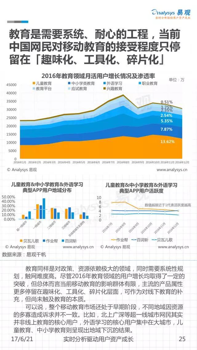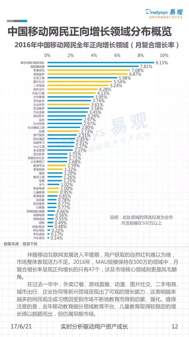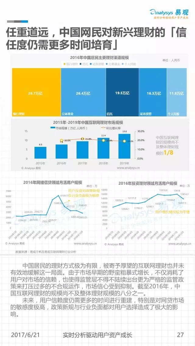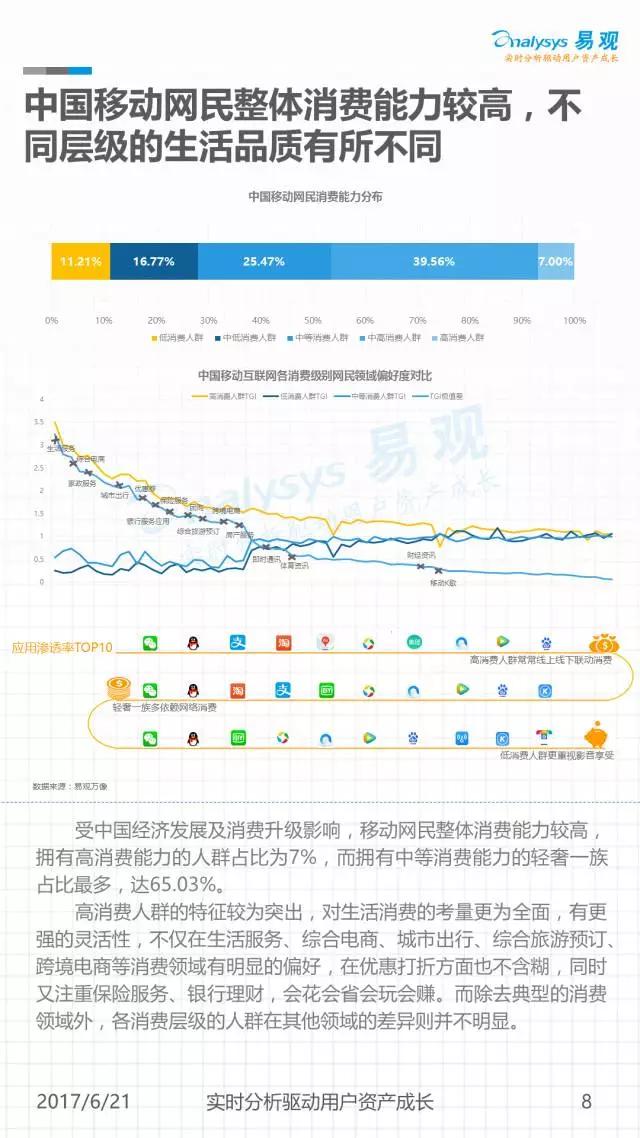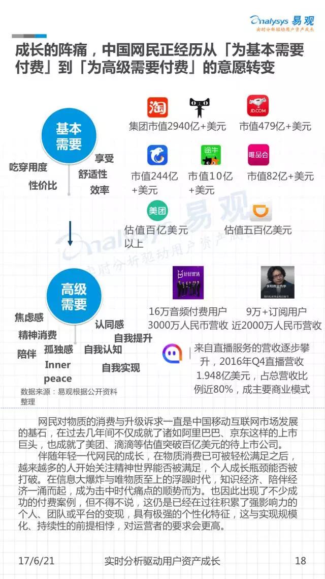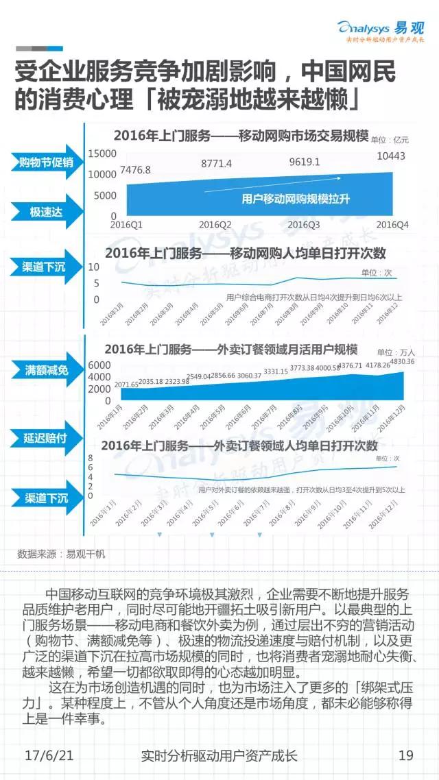 网生(网络生活),几乎凑成了我们一半的人生。而网民是互联网市场最重要的资产。《中国移动互联网网民图鉴》是由易观发布的一份聚焦2016年中国移动网民历史行为的分析,通过对移动网民在不同领域及应用间的规模分布、时间分布、意识形态变迁等进行解读,可以帮助大家从宏观到微观地窥见当下互联网的消费者全貌。