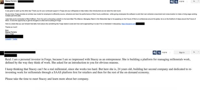 2、不放弃。“在找投资期间,我和153个投资人面谈过(其中一些是多次面谈)。如果我在第20个,第50个,或第100个时放弃,Forge今天不会存在。” Stacey Ferreira说。
