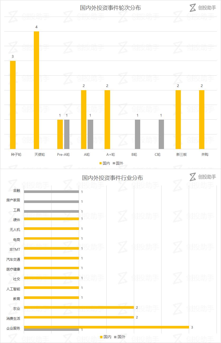 本日国内外共有20起融资事件,分布在15个行业中。国内16个项目获得融资,国外4个项目获得融资。