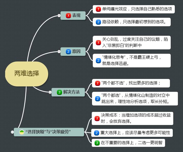 5、选择太少会“选择狭隘”,选择太多会“决策疲劳”,所以在不重要的选择上,二选一更明智;在重大选择上,应该尽量考虑更多可能性。