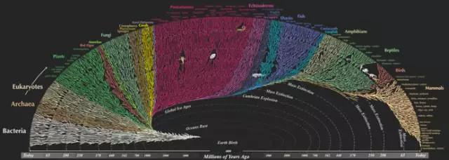 我想告诉大家的是,人工智能和我们人类的发展道路其实是不一样的。这张图上给出的是我们人类的发展道路,这是整个人类的进化曲线,从中间到外围是时间的发展,从左边到右边是低等到高等的发展,我们人类在这最右边出现。