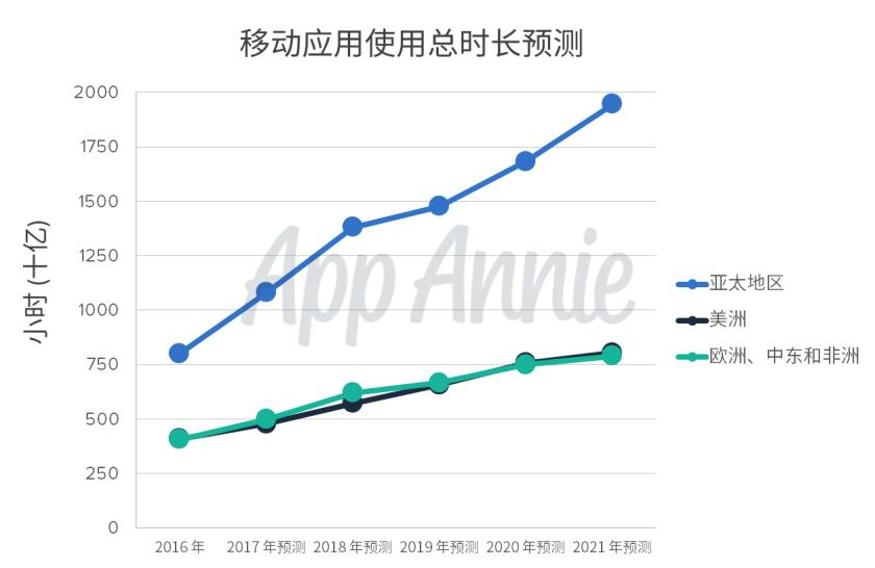 到 2021 年,全球应用的使用总时长预计将超过 3 万亿小时: