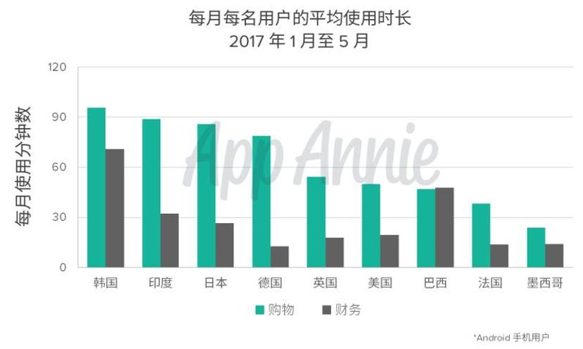 在一些国家/地区,移动用户每月花在购物上的时间超过 1 小时: