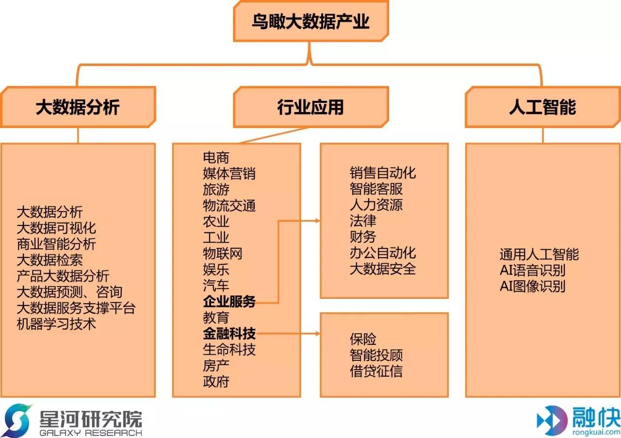 在有了足够的存储与计算能力,并获得了大量的数据后,数据分析产业的发展水到渠成。目前通用性的数据分析行业,主要有数据分析、数据分析可视化、大数据检索,以及延伸出的数据服务平台、商业智能分析及大数据预测与咨询这6大类业务。