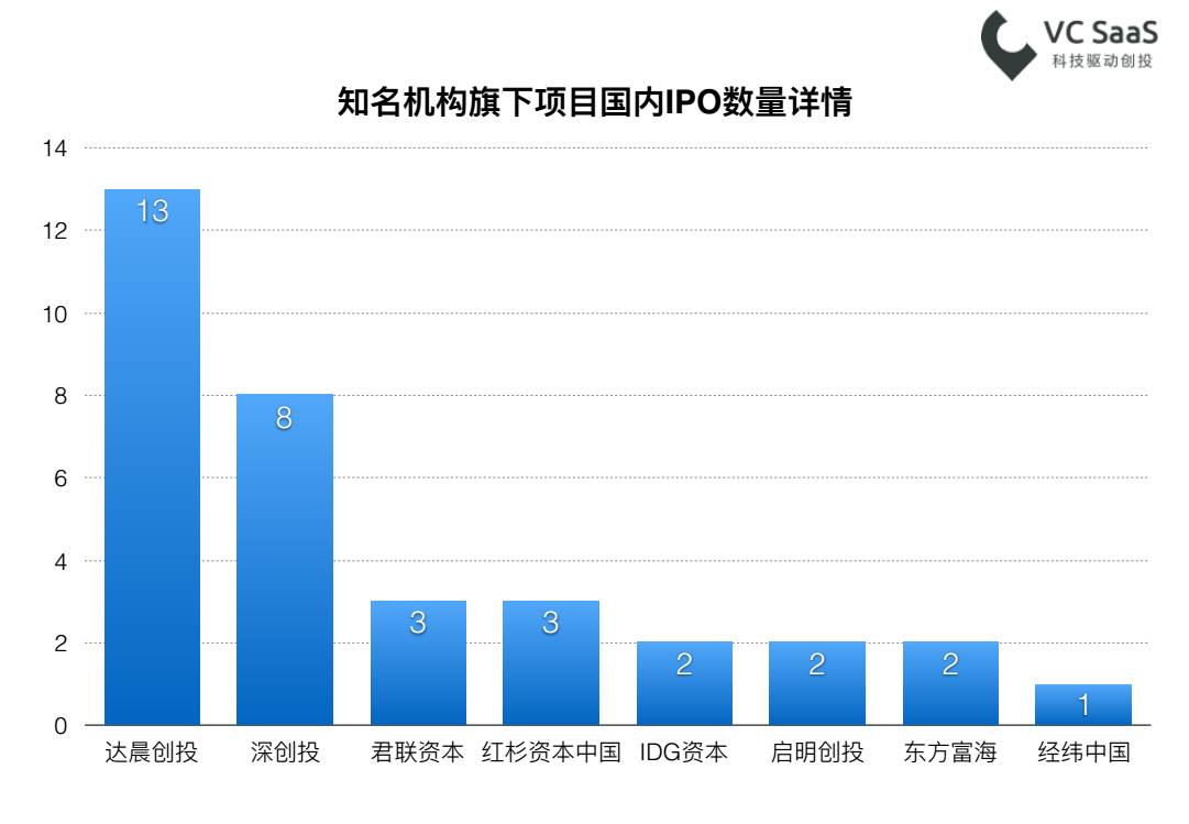 2017年上半年达晨创投投资的企业中IPO的数量达到了13个,深创投投资的企业中IPO的数量达到了8个。在Q1的时候,达晨创投的IPO数量已经达到6个,Q2净增7个,今年注定是达晨创投的丰收年。