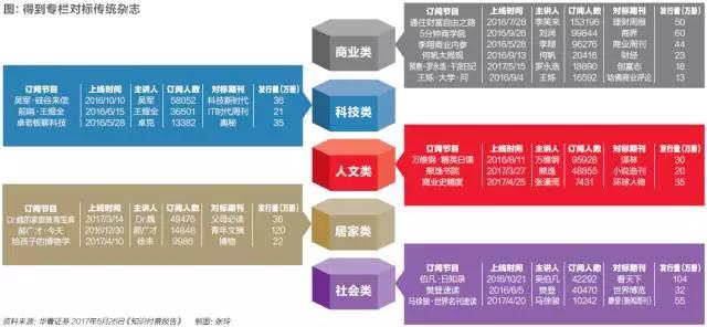华菁证券把得到上的付费内容分为三类,第一类是对标大众杂志类的个人版,第二类是对标畅销书,第三类则是对标专业领域知识。其中,得到订阅专栏产品大部分是对标大众杂志。