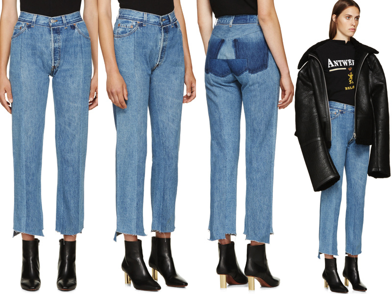 最后,Vetements特别爱出联名款,很会挑合作伙伴。目前跟Vetements合作过的品牌包括20多个,几乎每一款都能风靡社交网络。当年与李维斯合作的拼接牛仔裤是联名第一款产品,上架一天就被抢购一空,现在依然还是潮流风向。