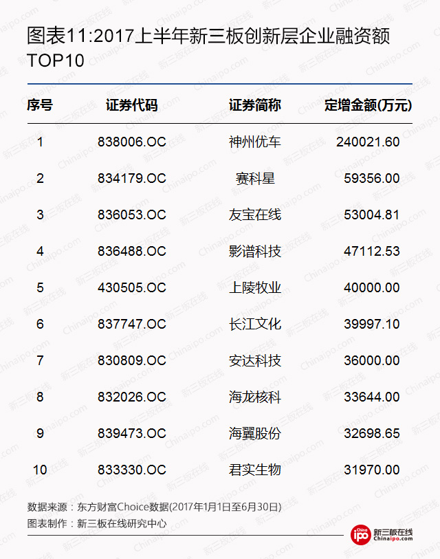 占新三板总规模11.8%的创新层企业,却享受了整个市场将近一半的资源。显然,本轮创新层调整的企业资质均不俗,颇受投资者欢迎。