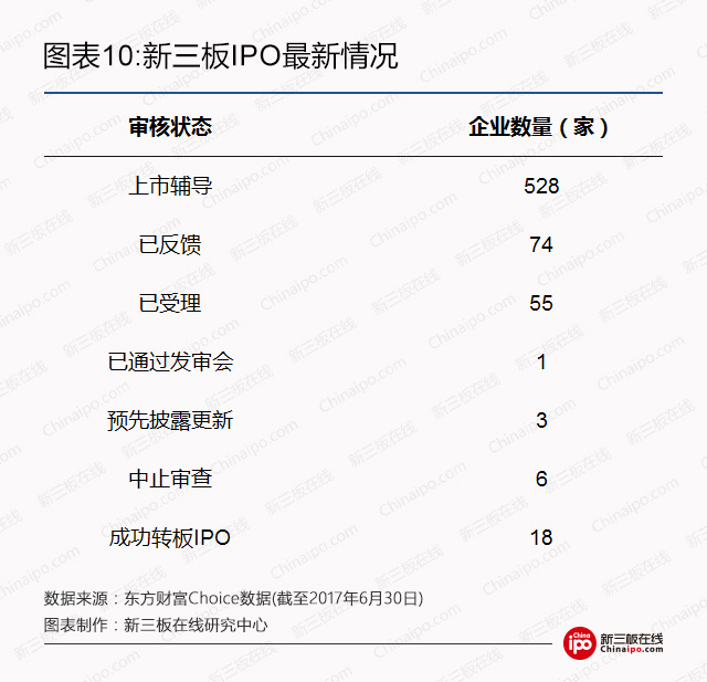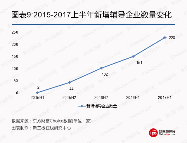 随着IPO的加速,越来越多挂牌企业为冲刺IPO做准备,仅2017年上半年就有228家企业开始上市辅导,其数量远超历年之和。其中,今年1至6月,有5家企业成功IPO,分别为艾艾精工、新天药业、光莆电子、三星新材、拓斯达。