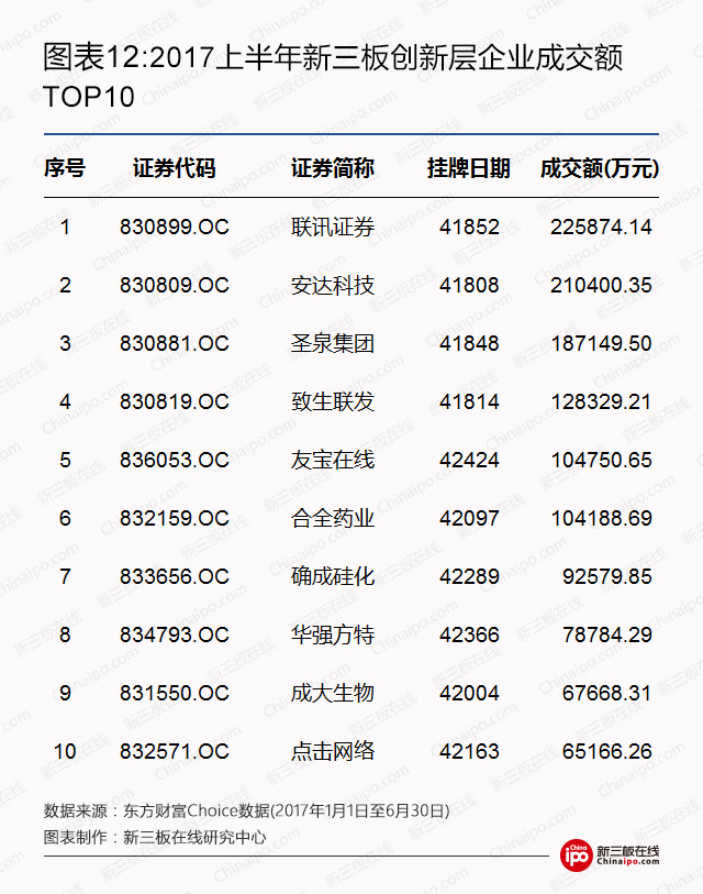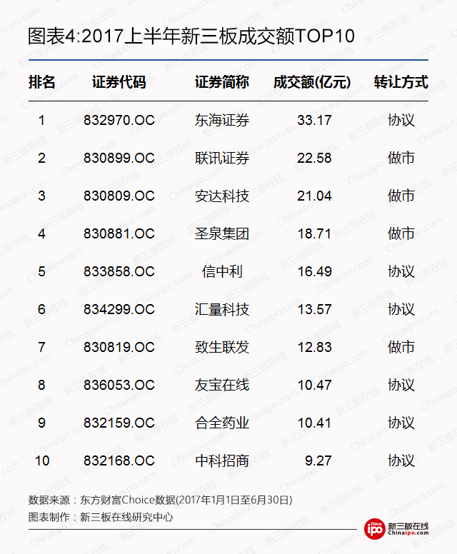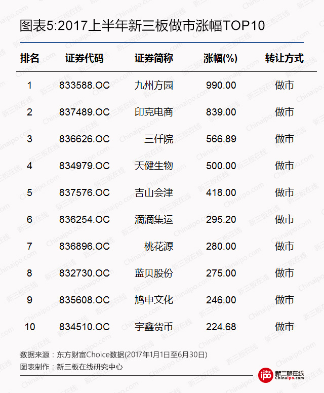 新三板在线研究中心认为,市场交易提升主要得益于上半年IPO概念火爆,不少挂牌企业筹备或正在冲刺IPO上市,这些企业也受到投资者的追捧。
