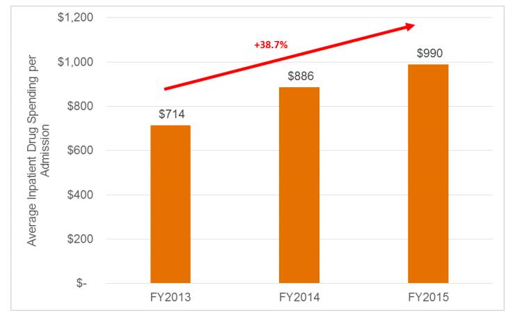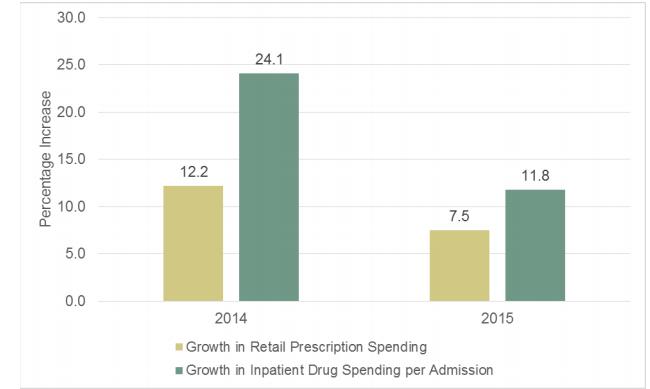 但是住院患者面临的情况就不是这样了。Medicare等医疗保险供应商通常会支付给医院以固定金额,用于补贴患者治疗费以外的费用,其中包括药品花费。但据美国医院协会与美国医院联合会于2016年联合发布的一份名为《住院患者药品成本变动趋势:问题与挑战》的报告,这一固定金额远远不足以支付医院在住院患者药物方面的花销。