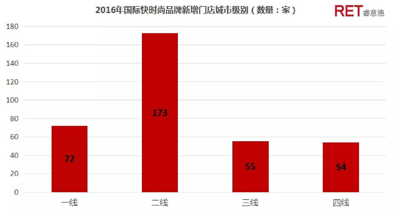 根据2016年国际快时尚品牌的城市分布来看,门店拓展持续向三四线城市下沉。其中以H&M、优衣库等品牌下沉的最为明显。