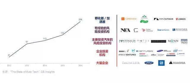 汽车科技的关注程度提高也吸引了更多的支持者,投资者数量自2012年开始持续增长。而且投资者的类型越来越多元化,以智慧城市和硬件为主的投资者纷纷涌现,企业风险投资部门(CVC)占了绝大多数,包括汽车制造商和供应商、航空航天企业和百半导体厂商。