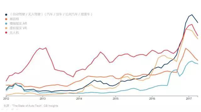 自动驾驶汽车,又被称为无人驾驶汽车,这个词越来越多的被提及。通过CB Insights的趋势工具量化关于“自动驾驶汽车”或“无人驾驶汽车”的媒体报道,我们看到从2017年开始,数量已经超过了无人机或AR/VR。