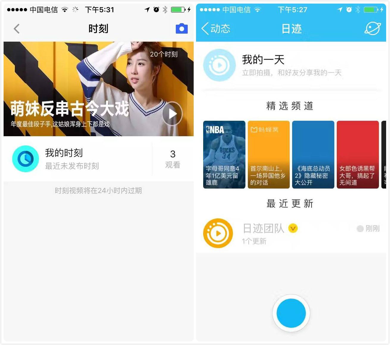 而这其实和 QQ 有些相仿,尽管 QQ 日迹团队像 2014 年的 Snapchat 一样,请来优质的视频媒体生产新闻内容以起到教化、引导用户的作用,但是普通用户的参与感依然不够强烈,更别提他们还有 QQ 空间作为抒发个人情感的场所,日迹存在感很低。