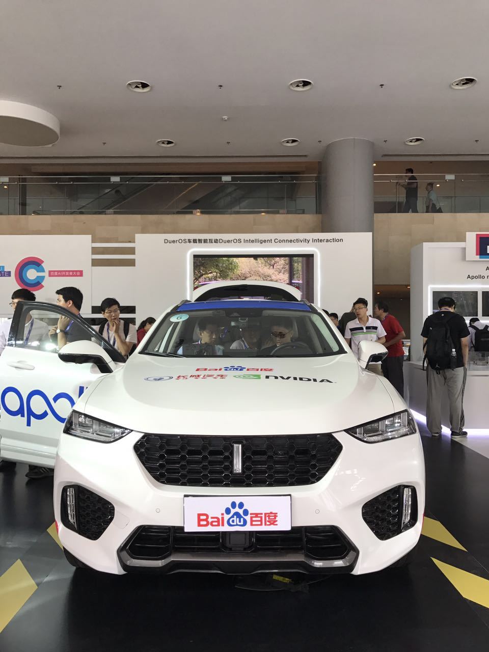 一辆是长城新近推出的高端车WEY,其搭载了英伟达芯片、百度Apollo技术,仅基于一个单目摄像头,利用端到端的深度学习实现车辆的横向和纵向控制。所谓的横向控制和纵向控制,简单说来分别是:横向即识别道路标线,能够保持车辆始终居于车道中、并能完成车辆转弯动作。在纵向上,主要是根据道路和前车情况实现自动加减速。