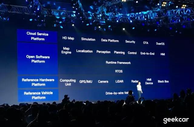 百度将这些与供应商合作生产的硬件模块统称为「参考硬件平台」(Reference Hardware Platform)以及「参考整车平台」(Reference Vehicle Platform)。其中包括计算单元,GPS,摄像头,激光雷达等传感器,还有 HMI 设备等等。对于这些硬件来说,百度并不会直接生产,而是提供参考方案以及参考能力,最终把这些产品量产的还是供应商。