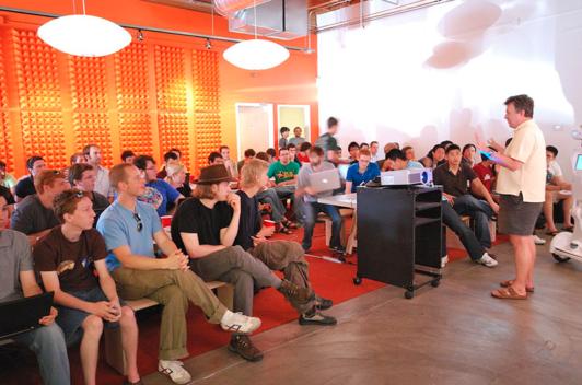 项目为期三个月,强度很高,主要围绕如何打造产品。Graham 和他的合伙人,会联合诸如 Paul Buchheit(Gmail 之父)之类经验丰富的产品人,为创业者提供咨询。Graham 通常会在 Pioneer Way 散步的时候开放他的咨询时间,而创始人就像苏格拉底的追随者一样一路跟着他,认真记下他说的每一个字。每周二晚是例行聚餐,菜式通常是炖菜之类的高碳水化物的食物。之后一位科技界大佬会发表讲话,可能是 Marissa Mayer、马克·扎克伯格或者其他人。