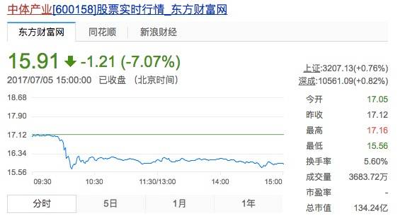7月5日中体产业的公告