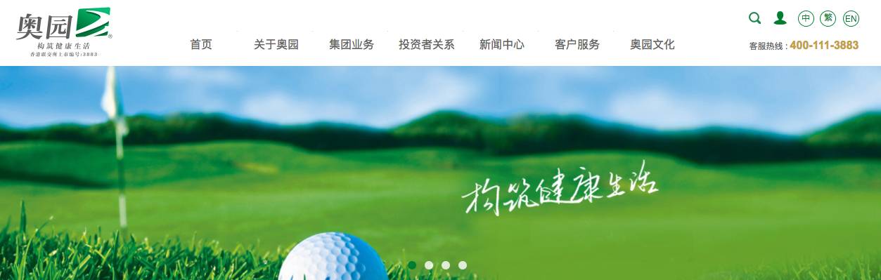 其官网首页写着“构筑健康生活”,并且展示了一座高尔夫场
