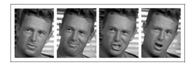 图1.图中是男演员斯特林·海登。Expressiveness rating 收集自 40 位候选人,从左至右是 42.5%、58.1%、54.4% 和 66.9%。这些图像没有用于研究,仅仅用于展示。