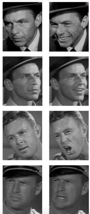 图2:左图是“中立面孔”的示例,右图是同一演员做出“生动表情”的图例。Expressiveness rating 从左到右(上至下)分别是17.5%、77.9%、14.4%、77.5%、29.4%、89.4%、48.1% 和 70%。