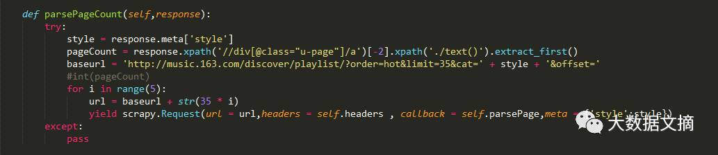 网易其实对歌单进行了分页操作,也就是说我们在爬取每个分类的时候还要知道在这个分类中的歌单共有多少页,所以接下来要去解析 每一类对应有多少页的歌单 (为了缩小爬取量只用了每个风格5页歌单,每一页包含35个歌单)
