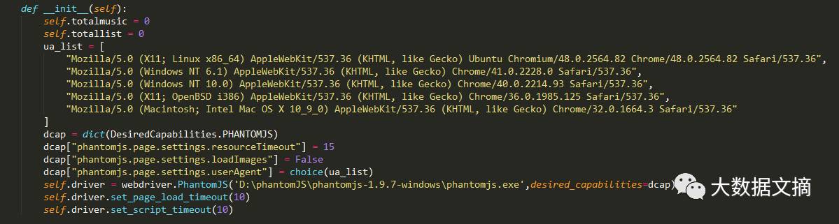 首先在初始化的部分,将PhantomJS的设置初始化。添加headers和timeout。
