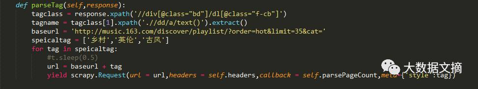 啊(Tag:流行、爵士...)通过xpath拿到标签的列表,这里我们为了节省爬取的时间只选择了3个标签。分别为 [ 古风,英伦,乡村 ]