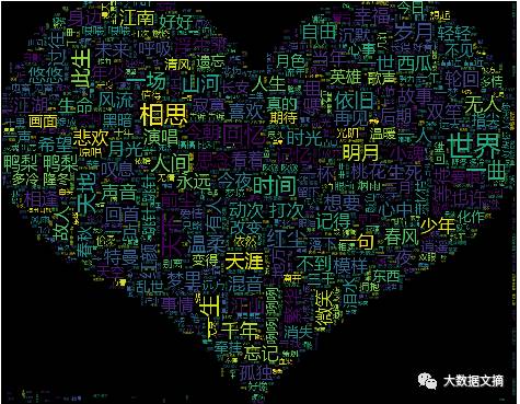 接下来呢,我们搞个有意思的东西【词云】 我们使用WordCloud 和 jieba 来实现这个小功能。效果图如下: