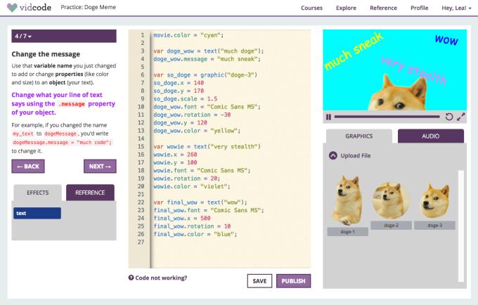 Vidcode 成立于2014年,以编程教育切入K12领域。学生可以根据自己的兴趣爱好去学习电脑编程的不同项目模块,以编程语言来创建视频过滤器,互动游戏,虚拟现实等等。 Vidcode目前提供全学期的编程课程,下设有初级和高阶课程。举个例子,初级课程里,学生可自行上传一张图片、视频、或音频。通过编程一段特效后滤镜后,学生可上传自自己的Snapchat 或 Instagram上。在完成编程学习的同时还可以输出 UGC内容,利于传播。高级课程则会涉及到更多的视频、影视以及VR/AR的编程教学。