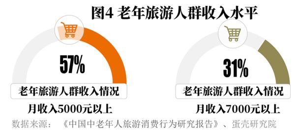 主观上,老年人有强烈的出行意愿。客观上,数据显示,月收入超过5000元的中老年旅游者占比57.8%,其中月收入超过7000元的高收入者占比31.3%。