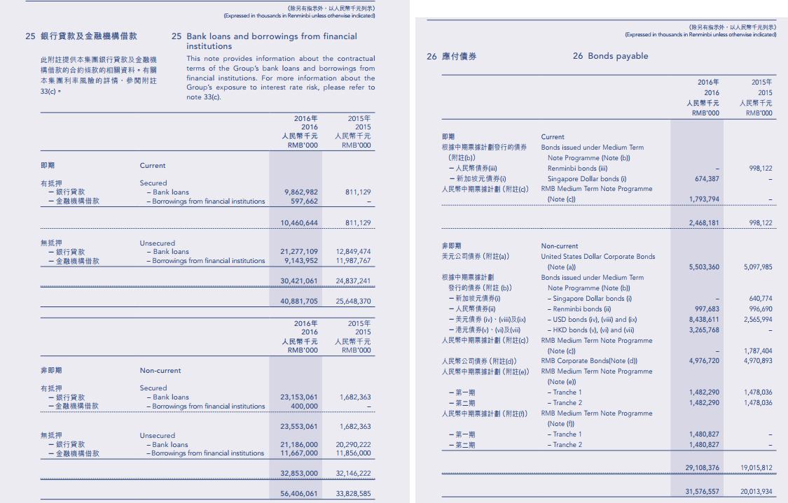 恒大借贷来源也主要是银行贷款,部分来自其他贷款、企业债和优先票据。财报显示,其举债实际利率从7.04%-9.81%不等。