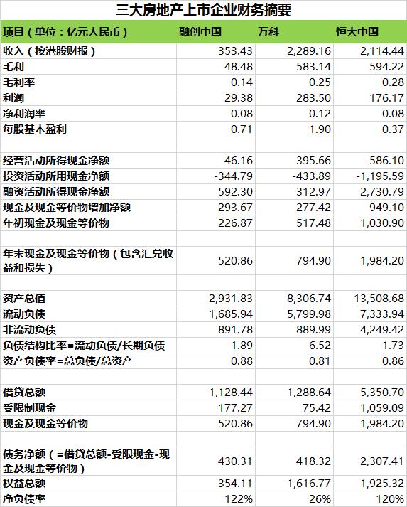 从盈利情况来看,万科似乎是比较好的一家。万科和恒大的毛利与毛利都超过融创10个百分点。