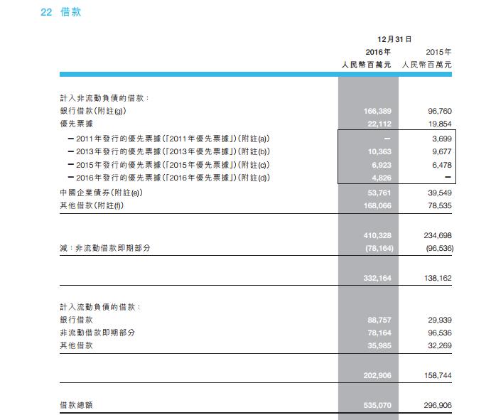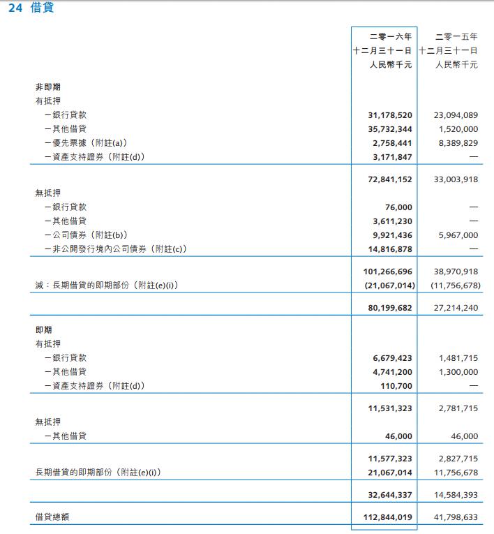 那么融创中国2016年借的1128亿中,分别来自哪里,从财报中看,贷款是融创最主要的融资渠道(包括银行贷款与其他借贷)、其次是發行公司债、资产支持证券和优先票据。