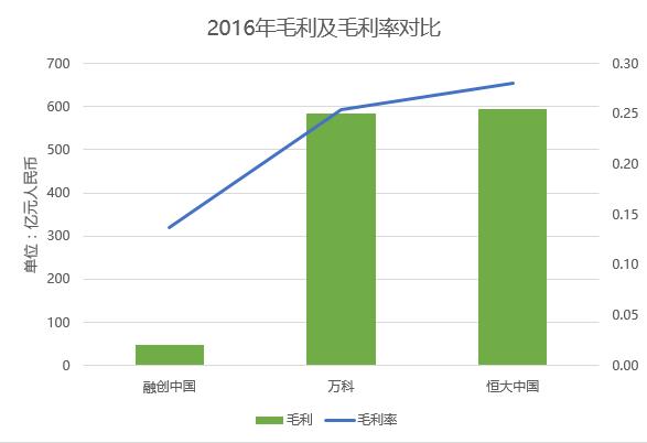 虽然恒大毛利率远高于融创,但看2016年的净利润率,融创和恒大却比较接近,万科则比两者都要高。