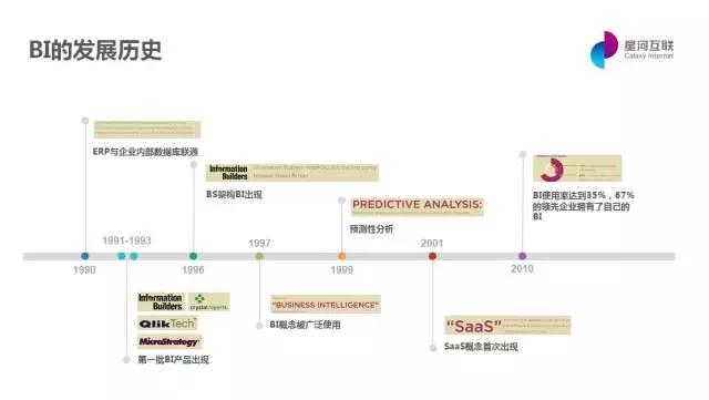 为了验证这个想法,我研究了一下BI的历史。1958年IBM的研究员Hans Peter Luhn首次提出了BI的定义:“BI是这样一种能力,这种能力可以理解已知事实之间的相互关系,以帮助用户采取正确的措施,达成既定目标。”可以看出,BI的作用是帮助用户对数据进行挖掘,发现对决策有价值的信息,其实就是商业情报。