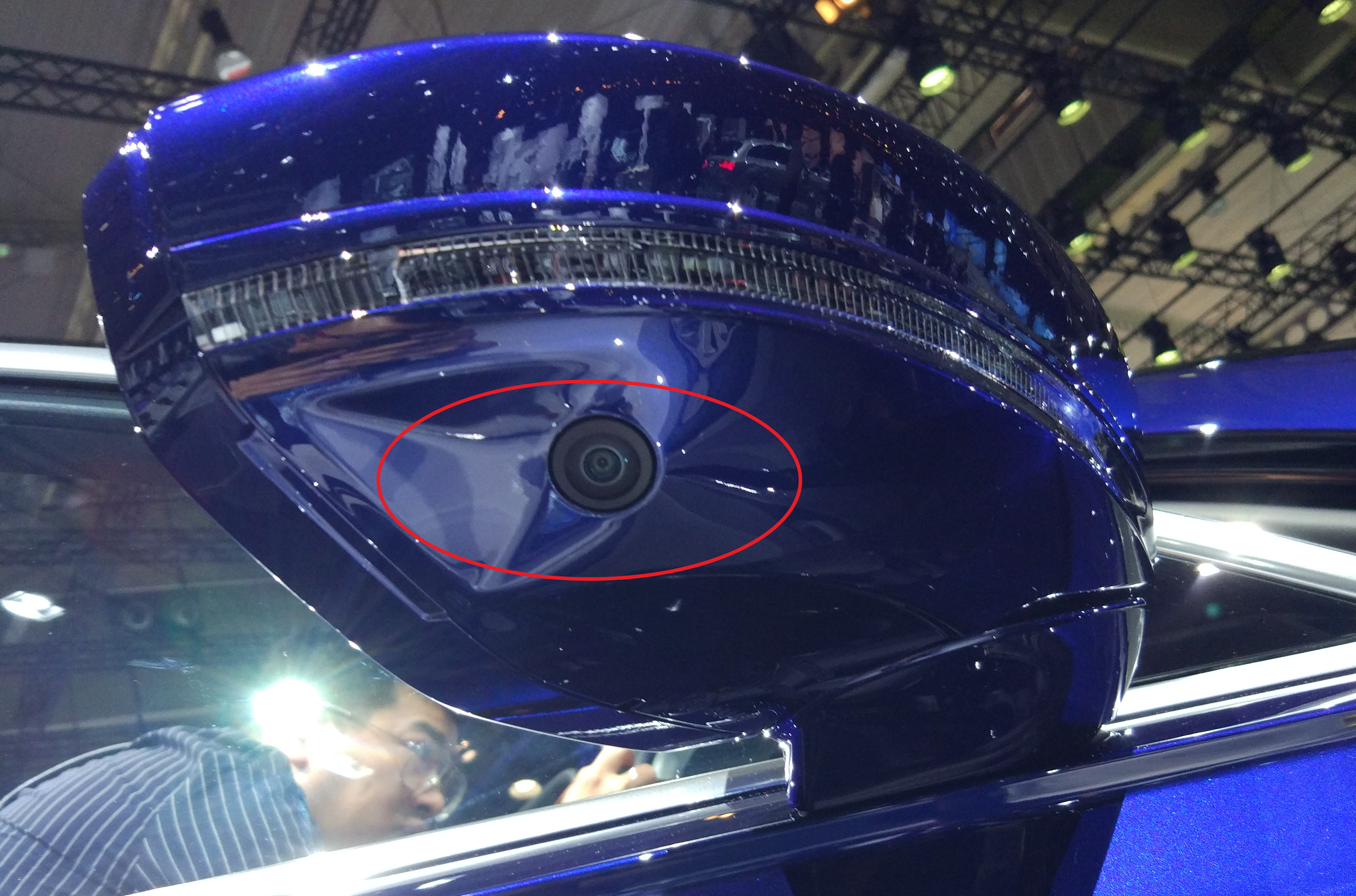 奥迪侧面没有特斯拉一样的徽标,因此感知侧面路况的摄像头被隐藏在后视镜下方。