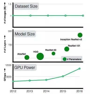 然而,尽管每年计算能力和模型复杂性都在进一步增加(从 7 层的 AlexNet 到 101 层的 ResNet),可用的数据集却没有相应的扩大。与 AlexNet 相比,101 层的 ResNet 的容量也大大增加,可后者训练时仍然使用的是大约 2011 年建立的 ImageNet——一个百万级的图像数据集。