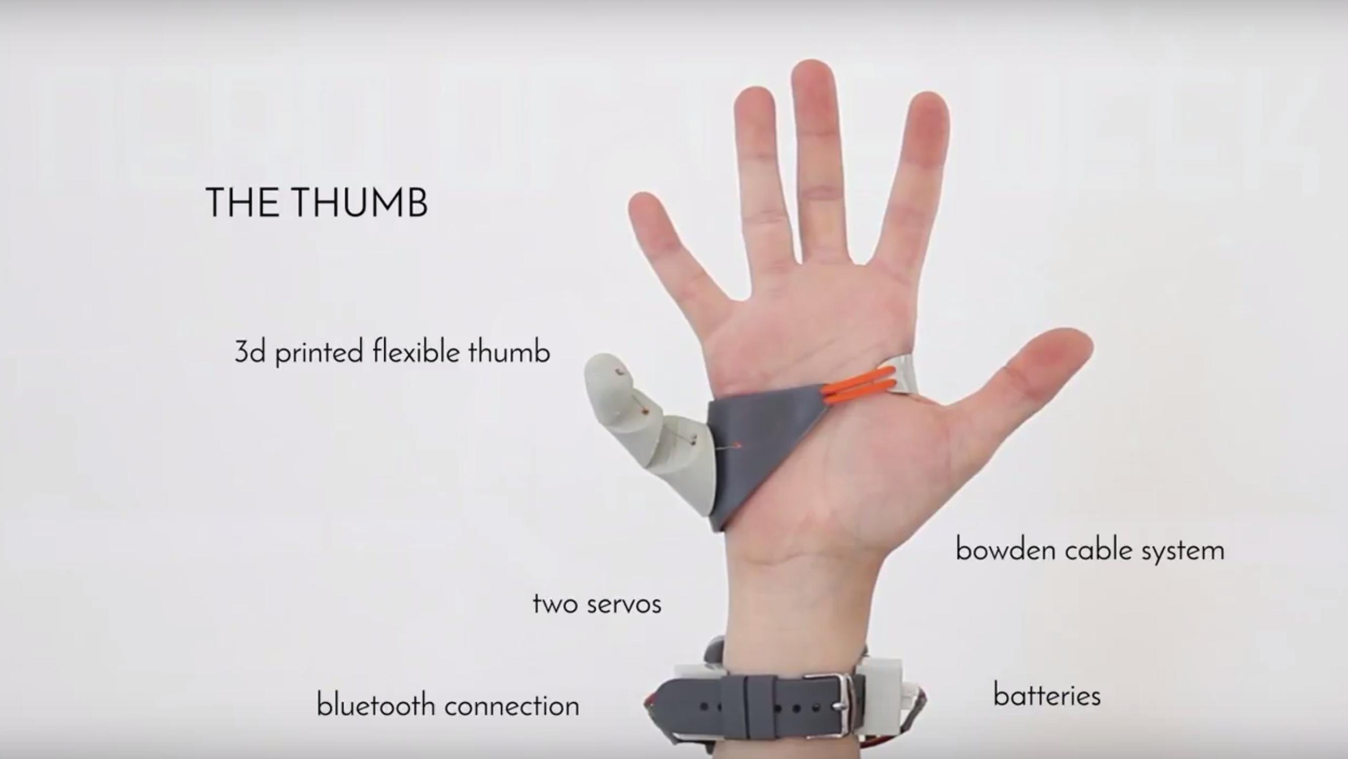 “第六手指”本身由一种伸缩性优秀的材料做成,并应用了电缆系统来发挥功效。该项设计主要是为了对日常生活中手指极高的灵活性和自由度进行模仿。而其制作过程所采用的的3D打印技术,为The Third Thumb今后版本设计中加入可私人定制化的元素提供了无限可能。