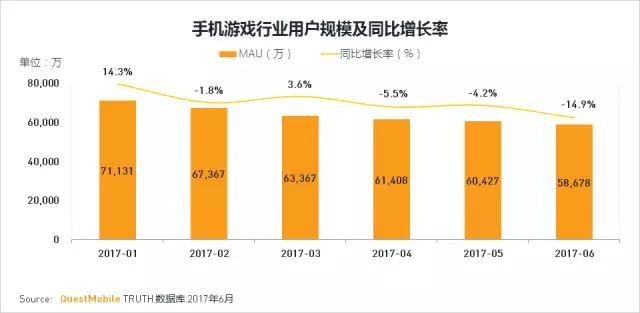 “农药”带动很多游戏迷的热情,目前用户规模已接近2个亿,同比增长149%。6月考试季对手机游戏行业也有影响,用户规模略有降幅。