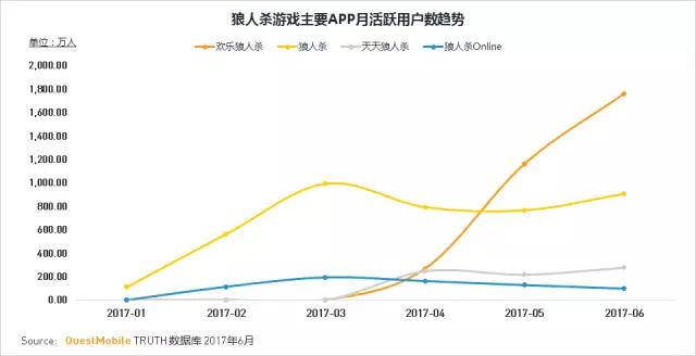 五月初,快乐大本营将欢乐狼人杀游戏搬上综艺舞台后,用户反响热烈,平台用户量呈直线上升趋势。