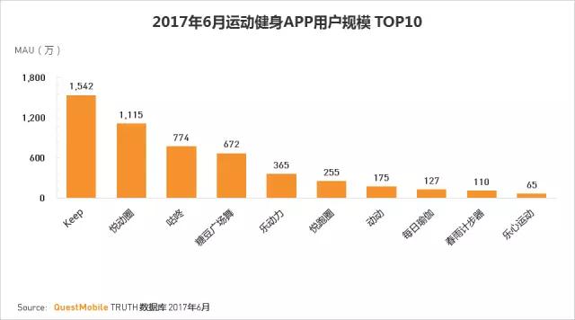 KEEP,悦动圈,咕咚占据行业前三。