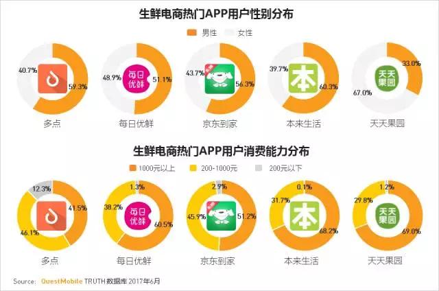 热门生鲜电商APP的用户消费能力普遍较强,线上消费1000元以上的占比基本都超过综合电商APP。