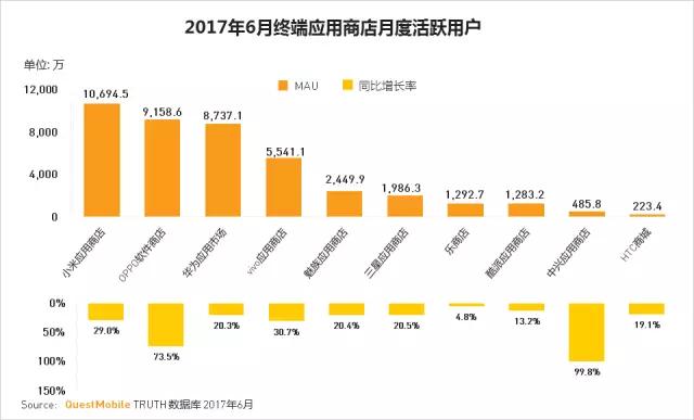 随着国产安卓手机的崛起,第三方应用商店的用户增长减缓明显,而终端应用商店用户迅速增长,OPPO软件商店,同比增长率达73.5%,逐步迈向亿级应用商店行列。