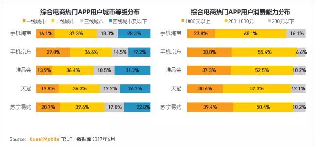 城市等级:京东在一线城市占比高,其他应用城市等级与移动整体分布近似。